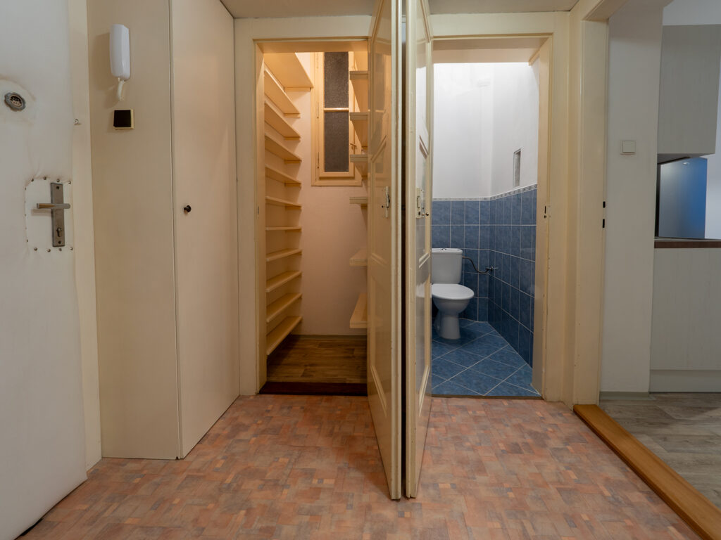Pronájem nezařízeného bytu s dispozicí 1+1 s výměrou 40,4 m², který je ve 2.NP činžovního domu s výtahem v ul. Koulova, Praha 6 – Dejvice. Byt sestává z kuchyně (16,4 m²), kuchyň je vybavena varnou deskou, sporákem, myčkou a lednicí. Dále je v bytě předsíň (4,5 m²), koupelna s vanou a pračkou (2,1 m²), separátní WC (1 m²) a komora (1 m²) Dále je v bytě pokoj (15,1 m²). Další úložný prostor je nad sníženým stropem v předsíni. Vytápění je lokální plynové (WAW) a ohřev vody zajišťuje vlastní bojler. Součástí pronájmu je také velmi prostorný sklep (viz. foto).