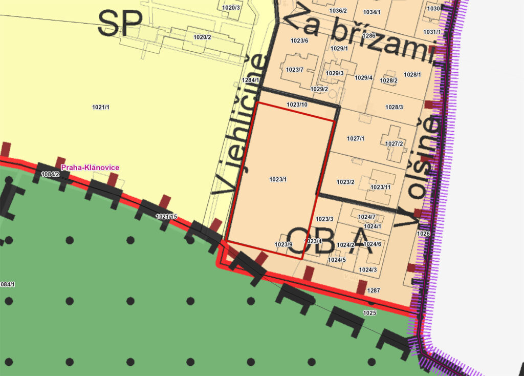 Prodej stavebního pozemku (parc.č. 1023/1 a parc.č. 1023/9) o celkové velikosti 4704 m², který je v územním plánu veden jako plocha (OB) – čistě obytná, s hlavním využitím jako plocha pro bydlení. Pozemek lze rozdělit na 4 – 5 stavebních pozemků s minimálními náklady na síťě